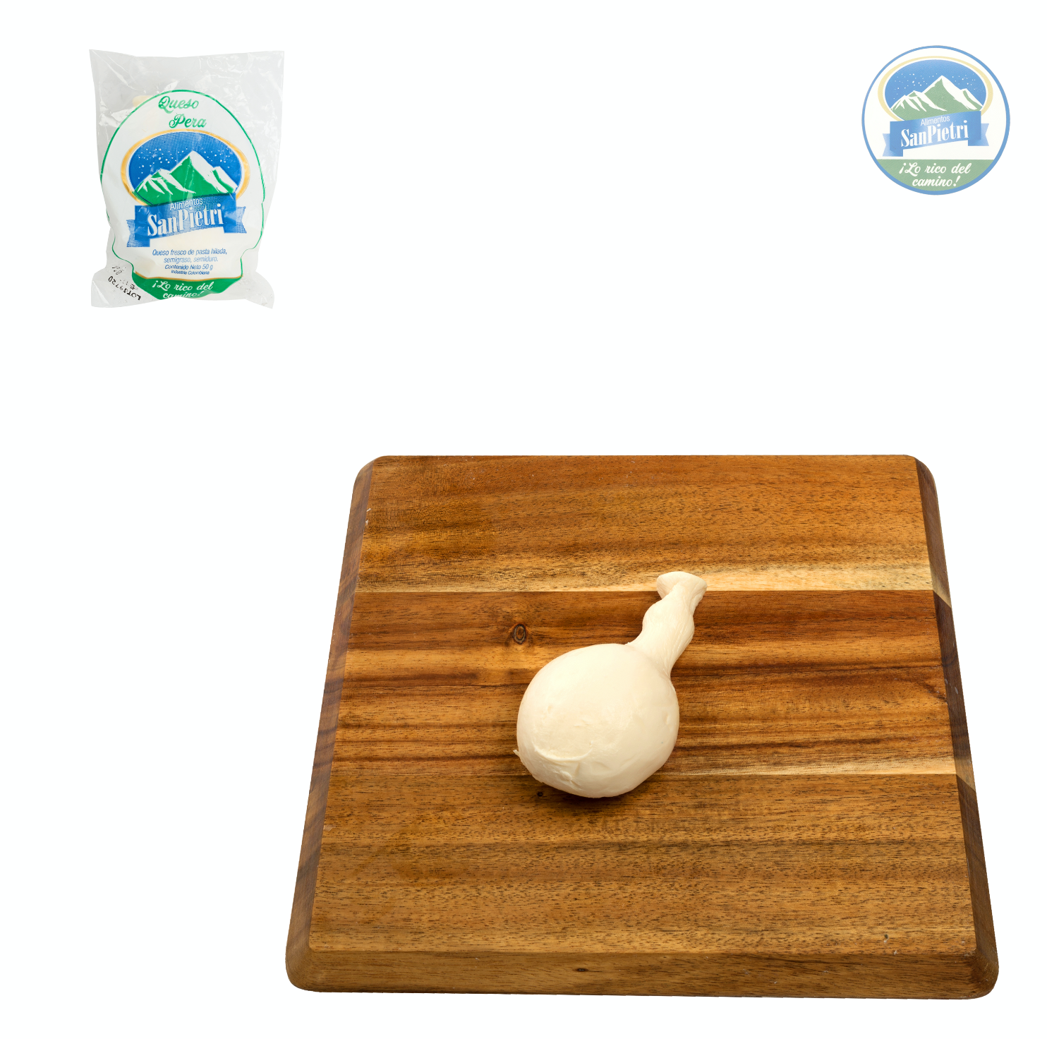 Quesito fresco hecho con leche 100% pura de vaca, de pasta hilada, semigraso, semiduro, moldeado artesanalmente en forma de pera.