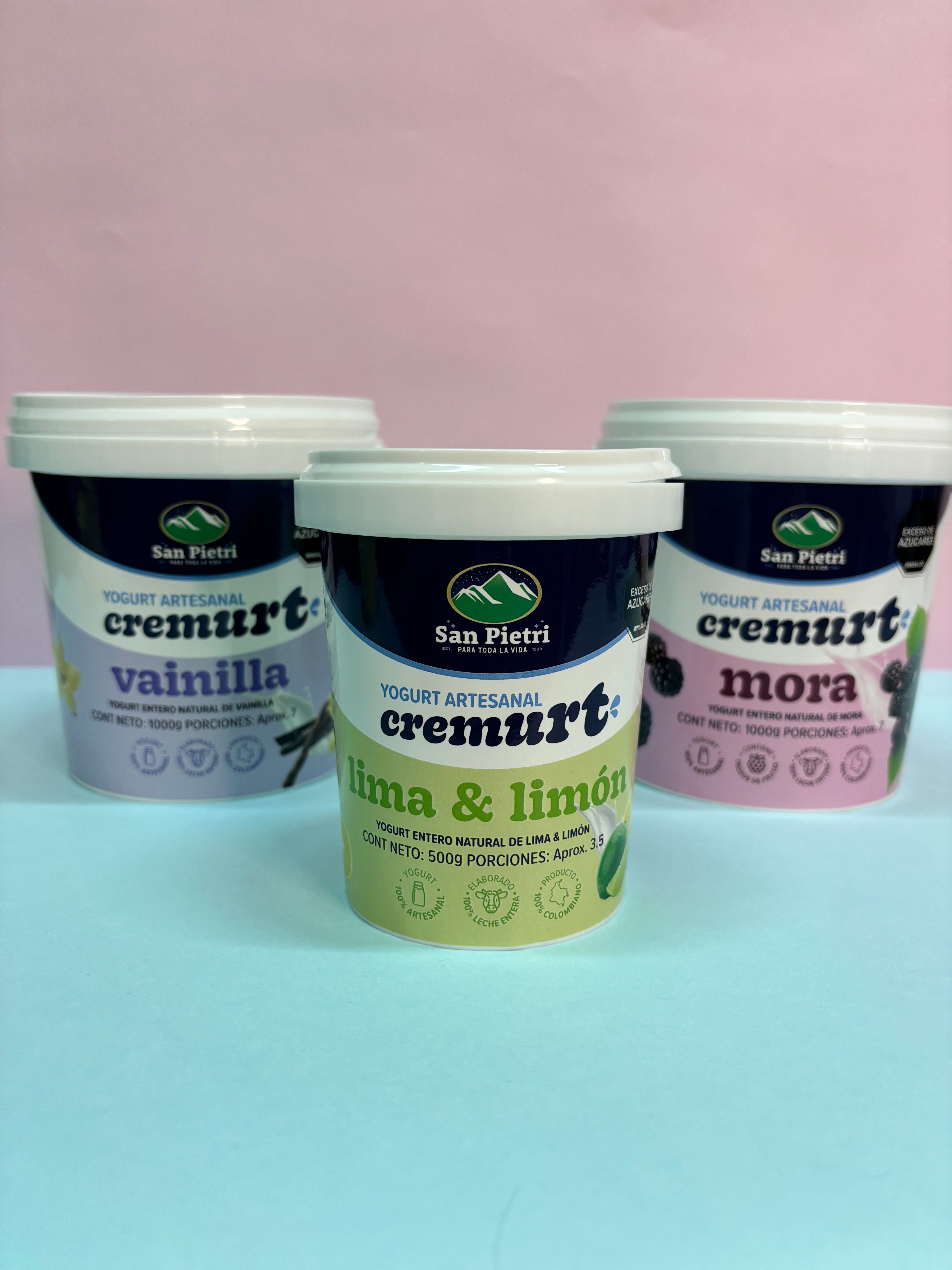 Yogurt Artesanal Cremurt: Yogurt artesanal de mora, hecho solo con leche de vaca y pedacitos de mora fresca, ideal para disfrutar un sabor fresco y natural. Es perfecto para cucharear a la hora del desayuno, como snack o cena.